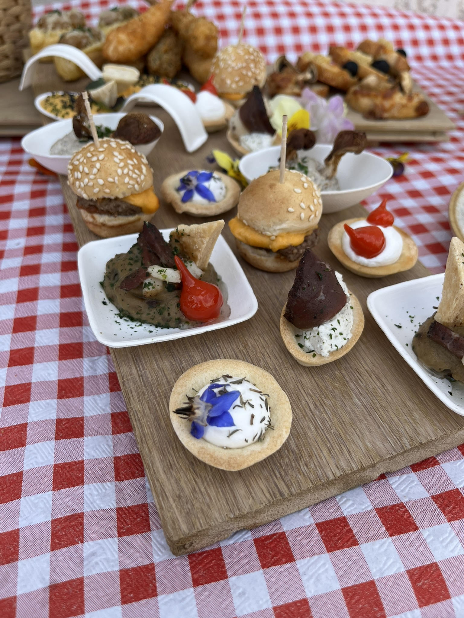 Vous y trouverez un assortiment de bouchées salées et sucrées, aux saveurs variées et aux textures travaillées. Que vous soyez amateur de viande, de poisson, ou que vous préfériez des options veggie, vegan ou sans gluten, tout le monde y trouve son bonheur.
