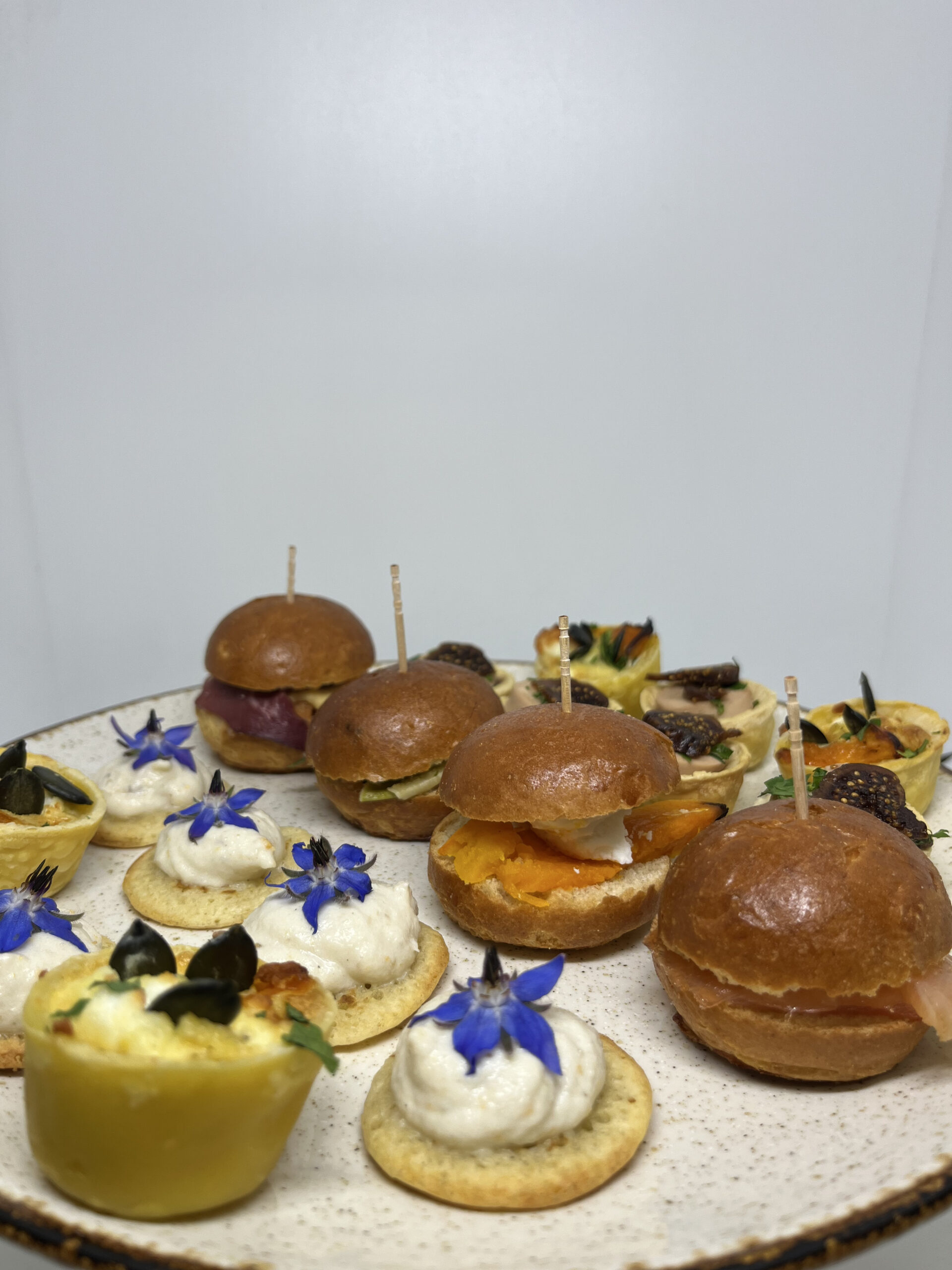 Vous y trouverez un assortiment de bouchées salées et sucrées, aux saveurs variées et aux textures travaillées. Que vous soyez amateur de viande, de poisson, ou que vous préfériez des options veggievegan ou sans gluten, tout le monde y trouve son bonheur.